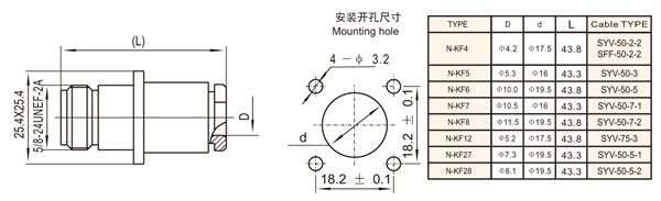 国内常用同轴电缆尺寸列表