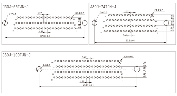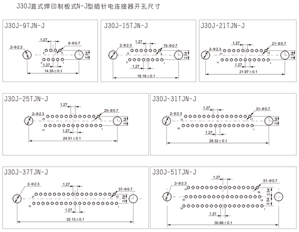 J30J直式焊印制板N-J型电连接器