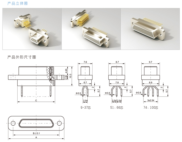 J30J弯式焊印制板W型电连接器