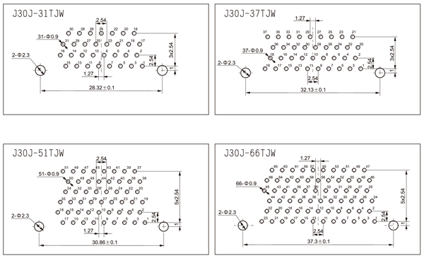 J30J直式焊印制板N-J型电连接器
